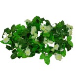 GloboStar® 09019 Τεχνητό Κρεμαστό Φυτό Διακοσμητική Γιρλάντα Μήκους 2.2 μέτρων με 33 X Μικρά Τριαντάφυλλα Πράσινα Λευκά