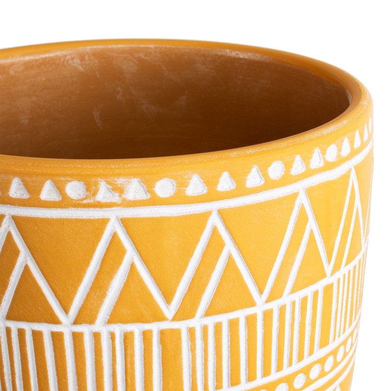 GloboStar® Artificial Garden JAIPUR 20506 Διακοσμητικό Κεραμικό Κασπώ Γλάστρα - Flower Pot Πορτοκαλί με Λευκό Φ16 x Υ16cm