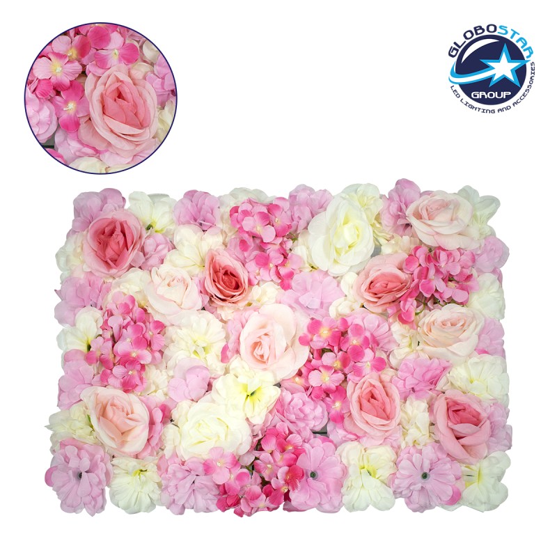 GloboStar® 78304 Συνθετικό Πάνελ Λουλουδιών - Κάθετος Κήπος Τριαντάφυλλο - Ορτανσία - Βιολέτα Μ60 x Υ40 x Π7cm