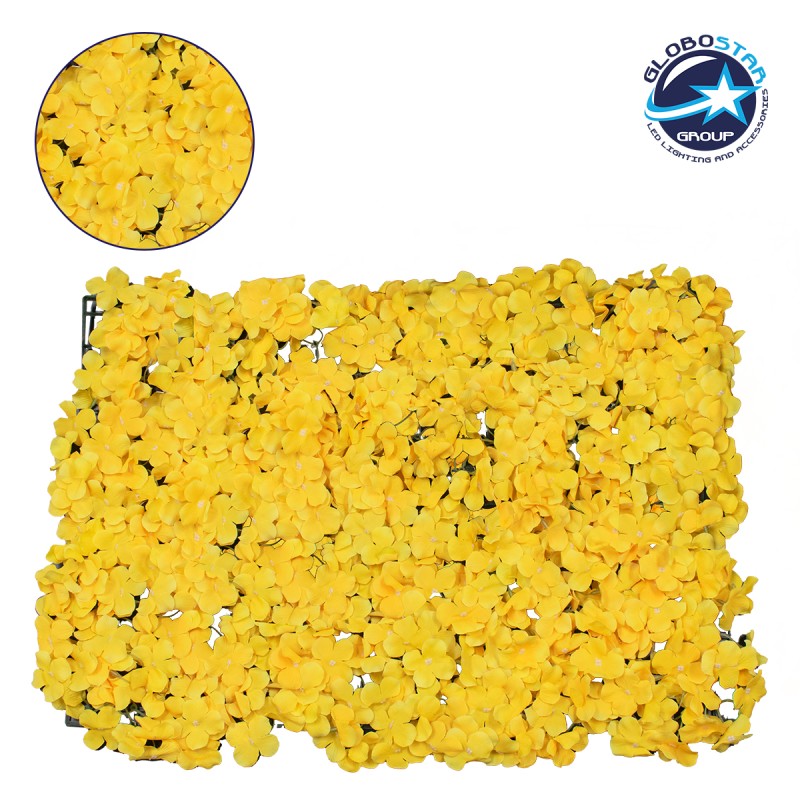 GloboStar® 78317 Συνθετικό Πάνελ Λουλουδιών - Κάθετος Κήπος Ορτανσία Κίτρινο Μ60 x Υ40 x Π5cm