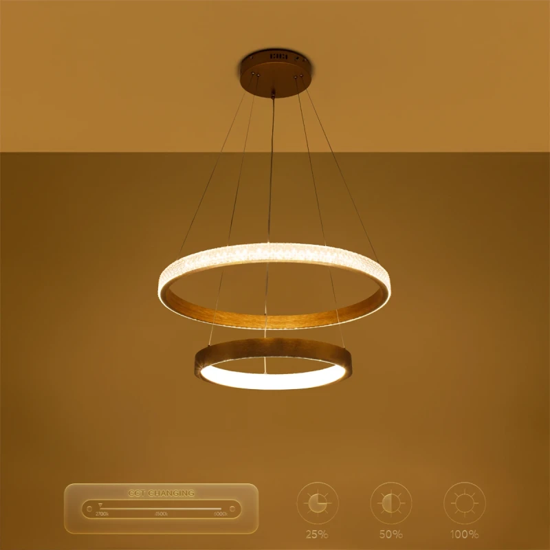 kelvo® DIAMOND KLV-101-0236 Κρεμαστό Φωτιστικό Οροφής LED 75W 7500lm 360° AC 220-240V IP20 Ρυθμιζόμενο Λευκό CCT με Χειριστήριο από 2700K έως 6000K Dimmable - Lumileds SMD Chip - Χρυσό Πλατίνα - Μ60 x Π60 x Υ40cm - 3 Χρόνια Εγγύηση