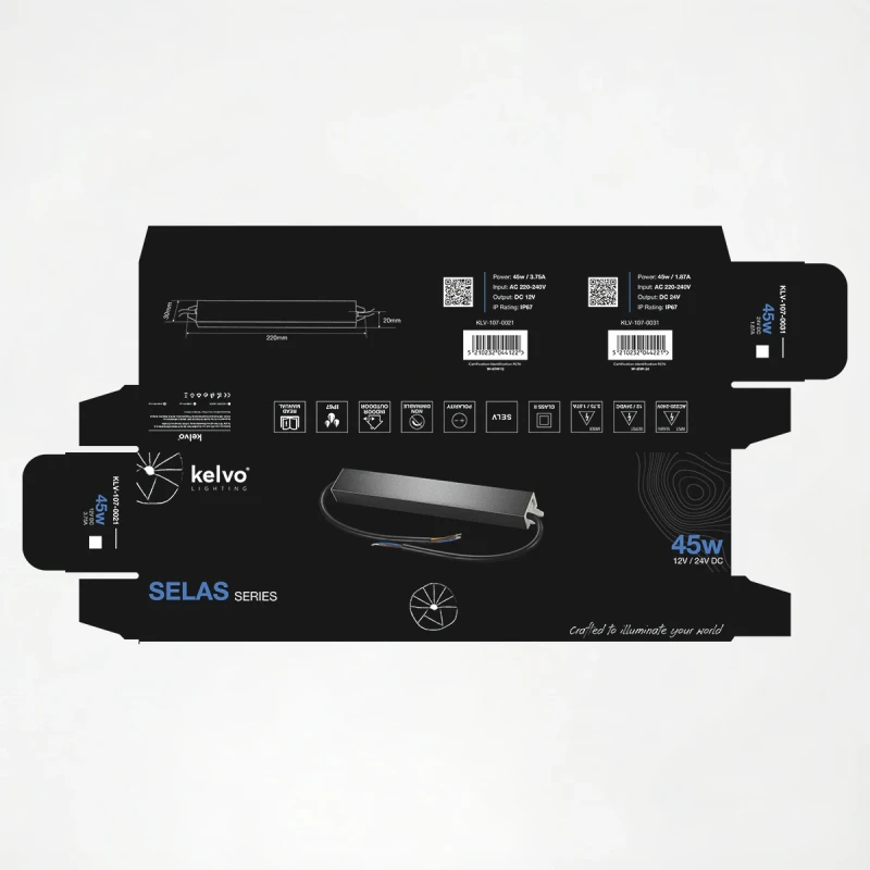 kelvo® SELAS KLV-107-0031 Τροφοδοτικό/Μετασχηματιστής Class II SELV 45W 1.87A AC 220-240V σε DC 24V Αδιάβροχο IP67 - Γκρι Ανθρακί Ματ - Μ22 x Π3 x Υ2cm - 5 Χρόνια Εγγύηση