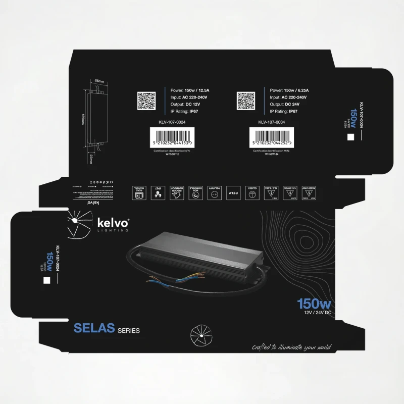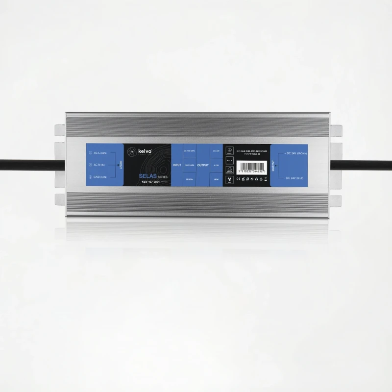 kelvo® SELAS KLV-107-0034 Τροφοδοτικό/Μετασχηματιστής Class I PELV 150W 6.25A AC 220-240V σε DC 24V Αδιάβροχο IP67 - Γκρι Ανθρακί Ματ - Μ18.9 x Π6.5 x Υ2.2cm - 5 Χρόνια Εγγύηση