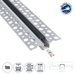 GloboStar® PLASTERBOARD-PROFILE 70839-1M Προφίλ Αλουμινίου - Βάση & Ψύκτρα Ταινίας LED με Μαύρο Φιμέ Κάλυμμα - Χωνευτή Χρήση σε Γυψοσανίδα - Trimless - Πατητό Κάλυμμα - Ασημί - 1 Μέτρο - Μ100 x Π5.6 x Υ1.5cm