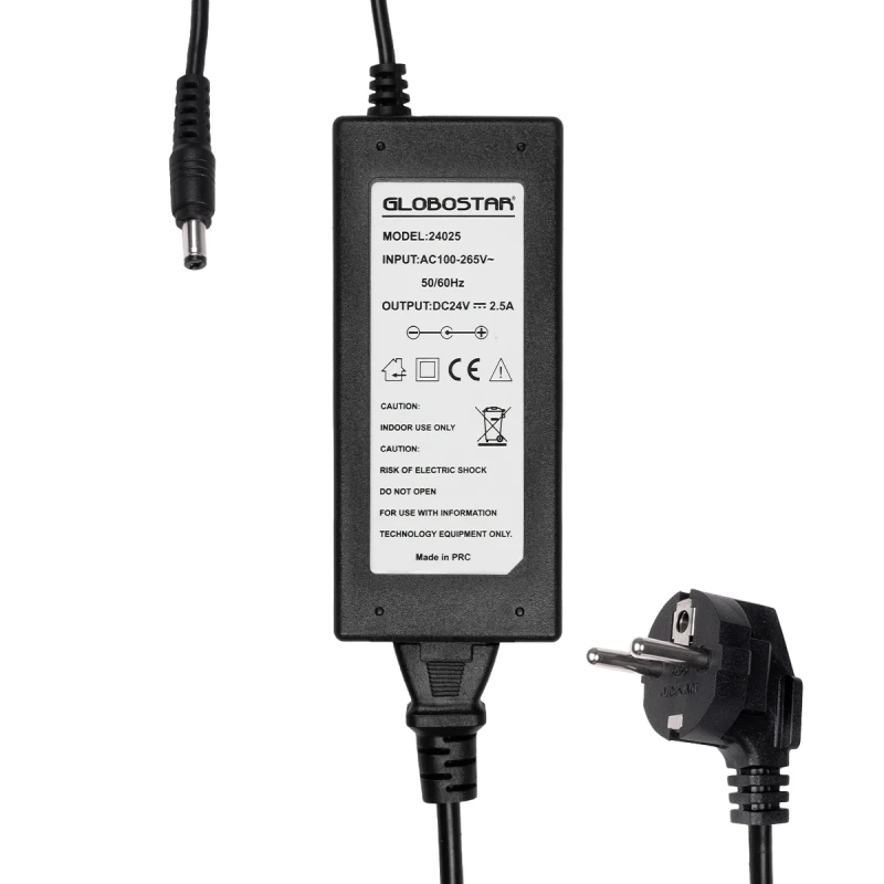 GLOBOSTAR® VOLTIX GLB-107-0007 Τροφοδοτικό/Μετασχηματιστής Class II SELV 60W 2.5A AC 220-240V σε DC 24V IP20 - Μαύρο Ματ - Μ11.5 x Π5 x Υ3.2cm - 3 Χρόνια Εγγύηση
