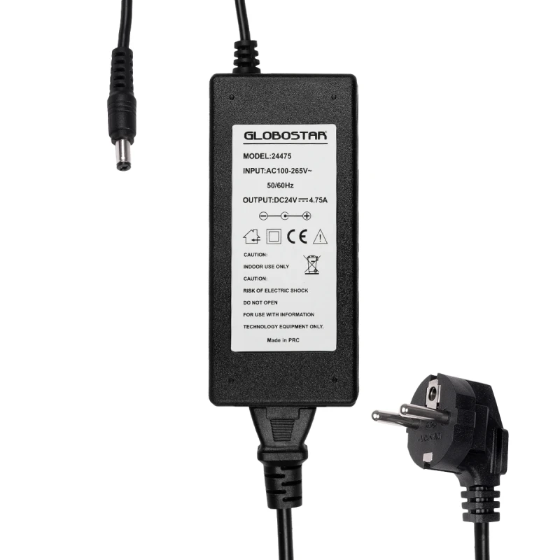 GLOBOSTAR® VOLTIX GLB-107-0008 Τροφοδοτικό/Μετασχηματιστής Class II SELV 120W 4.75A AC 220-240V σε DC 24V IP20 - Μαύρο Ματ - Μ14.2 x Π6.5 x Υ3.7cm - 3 Χρόνια Εγγύηση