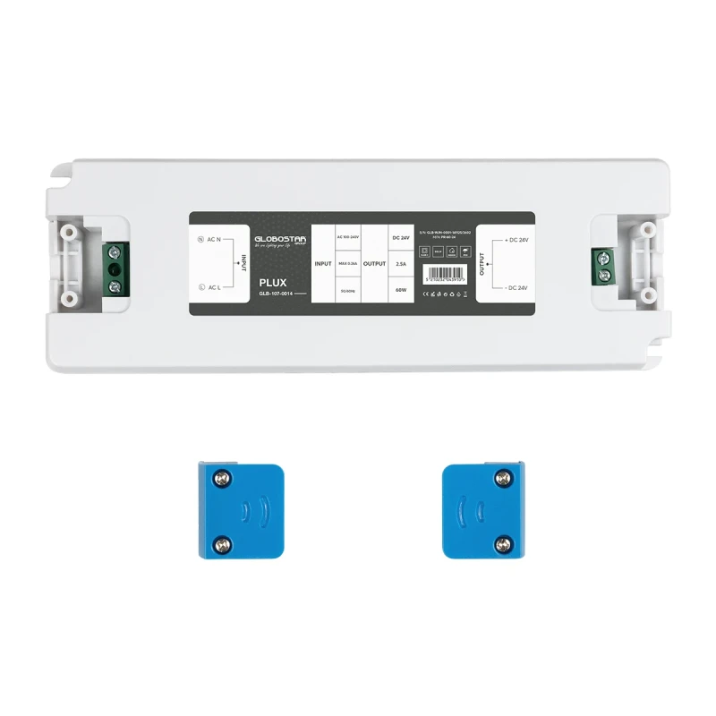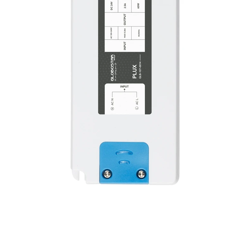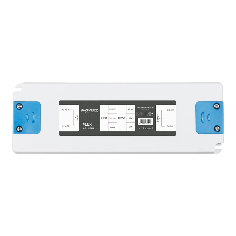 GLOBOSTAR® PLUX GLB-107-0014 Τροφοδοτικό/Μετασχηματιστής Class II SELV 60W 2.5A AC 220-240V σε DC 24V IP20 - Λευκό Ματ - Μ18.5 x Π6.4 x Υ2.2cm - 3 Χρόνια Εγγύηση