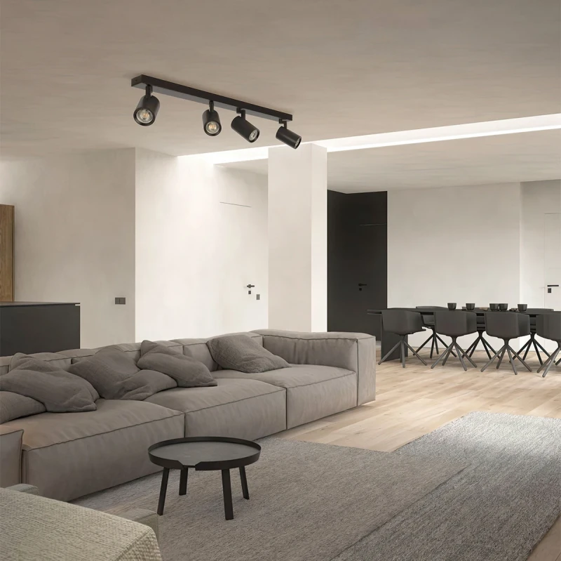 kelvo® SPOTA KLV-101-0140 Μοντέρνο Κινούμενο Φωτιστικό Σποτ Οροφής με Ντουί 4 x GU10 90° AC 220-240V IP20 - Μαύρο Ματ - Μ64 x Π6 x Υ14cm