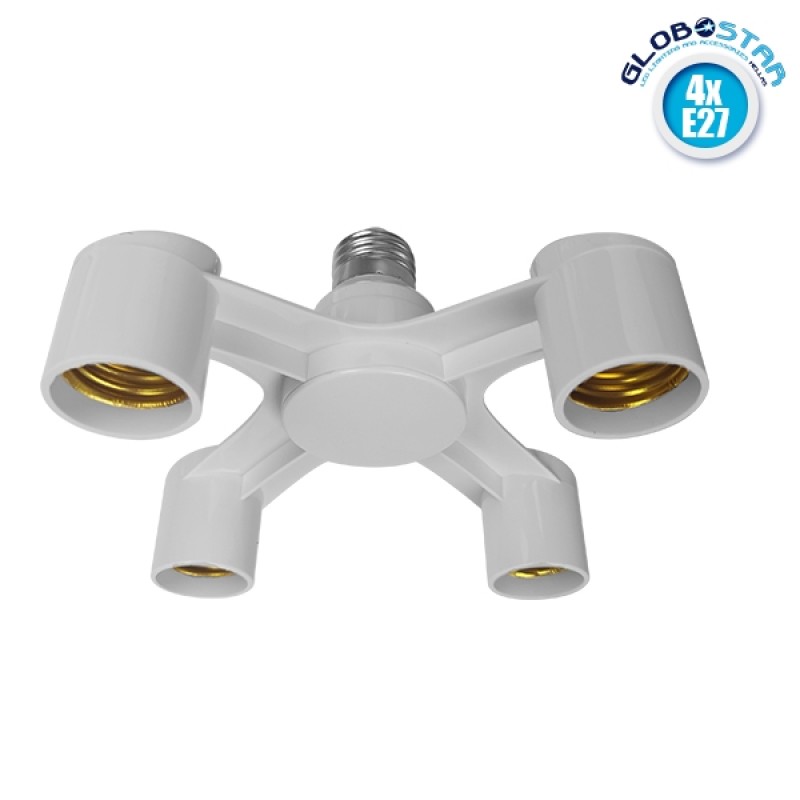 GloboStar® 78977 Πλαστικός Αντάπτορας Μετατροπέας από 1xE27 Ντουί σε 4xE27 Ντουί Λευκό