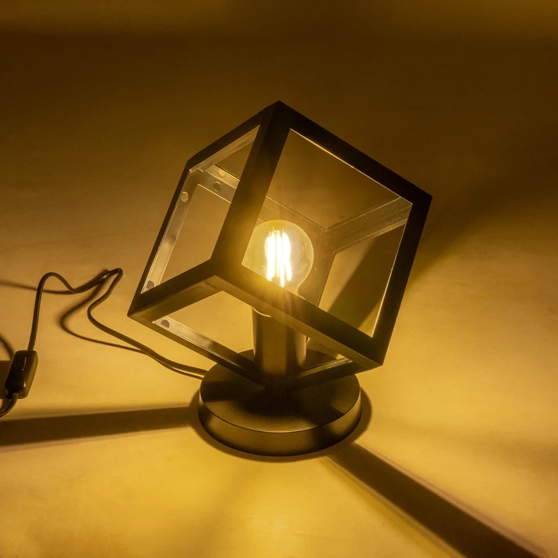 GLOBOSTAR® DISE 203-0272 Μοντέρνο Επιτραπέζιο Φωτιστικό Πορτατίφ με Ντουί 1 x E27 AC 220-240V IP20 - Μαύρο - Μ28 x Π28 x Υ29cm