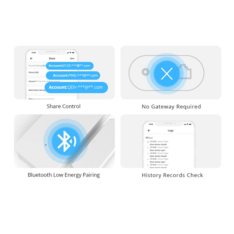 Wi-Fi Wireless Door Window Sensor Remind you when door/window is opened or closed. Keep linkage with SONOFF smart products for your easier smart life No gateway required. The sensor is paired with APP via Bluetooth and is controlled on APP via Wi-Fi Worry about leaving your door or window open /closed? View instantly the status of home on APP The sensor will send you a push notification immediately if someone is detected to open your door or window Add SONOFF camera or an unused smartphone, and you can view what’s going on in your home not just receive the alert notification when the door is opened Want the hallway to light up when you walk into the door and light off when you walk out the door? Simply connect the SONOFF switch or SONOFF light to the sensor and go |
